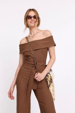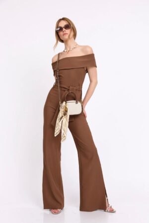 אוברול לערב מחשוף ריטה בגזרה מחטבת סיומת פדלפון שסע, חגורה לקשירה במותן.