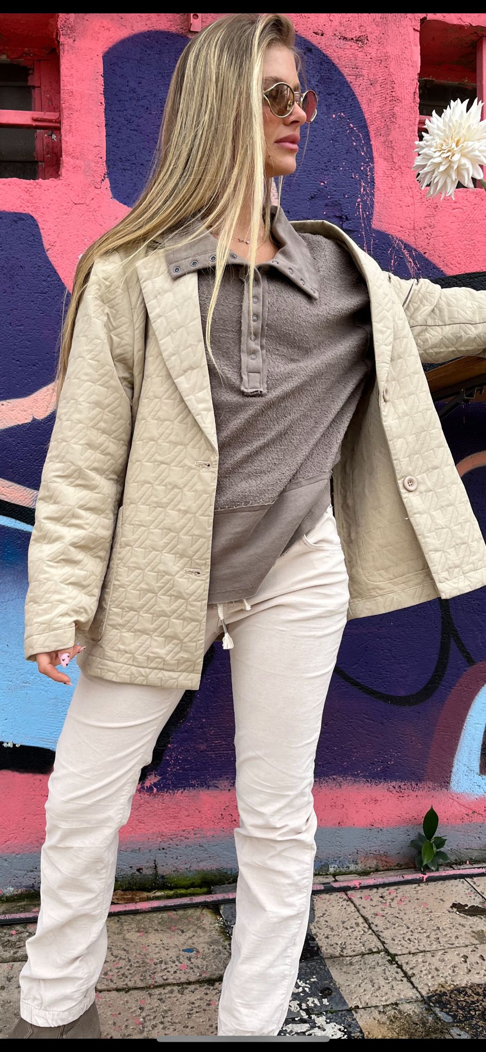 גזרה מחוייטת במראה קליל ספורטיבי, בתוספת כיסים וכפתורים.