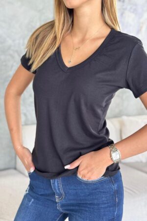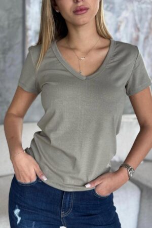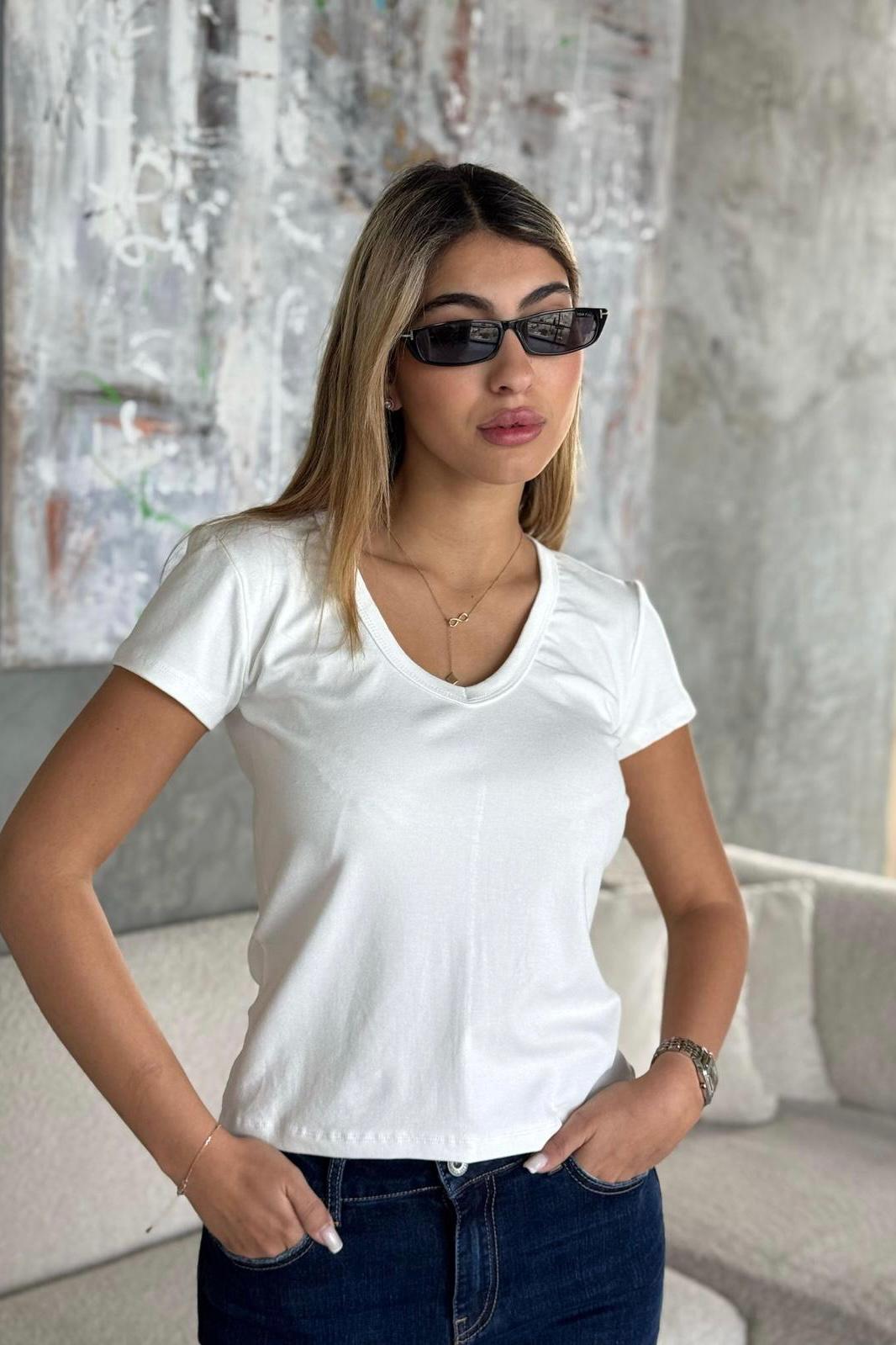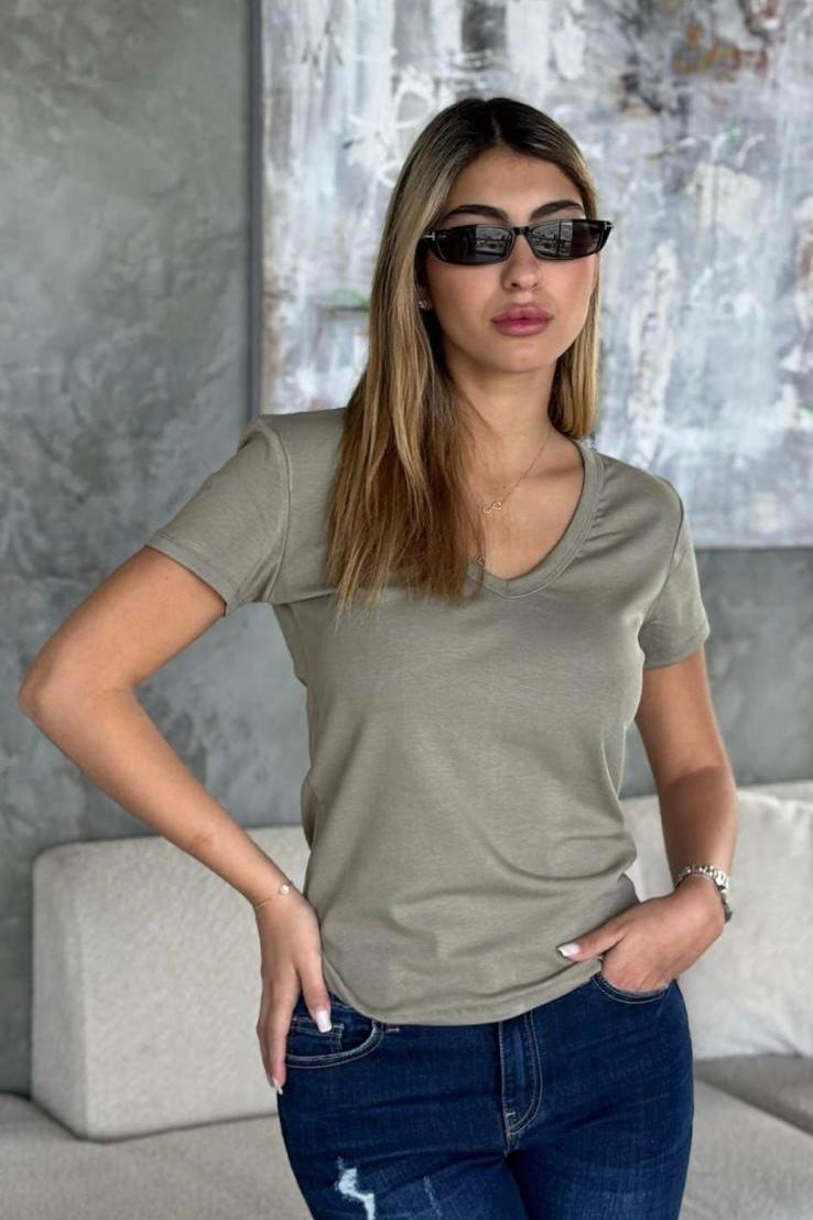 חולצת טי שירט קצרה מפתחוי מבד מוס.