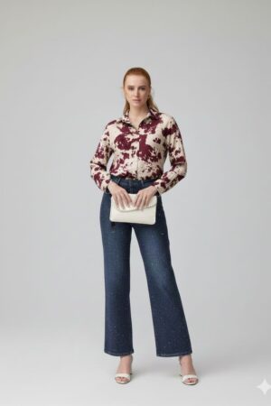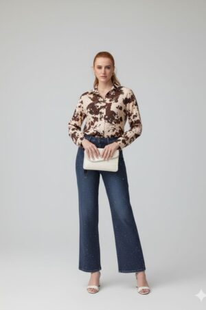 חולצת כפתורים מכופתרת בהדפס אבסטרקט לנשים ייבוא מפריז