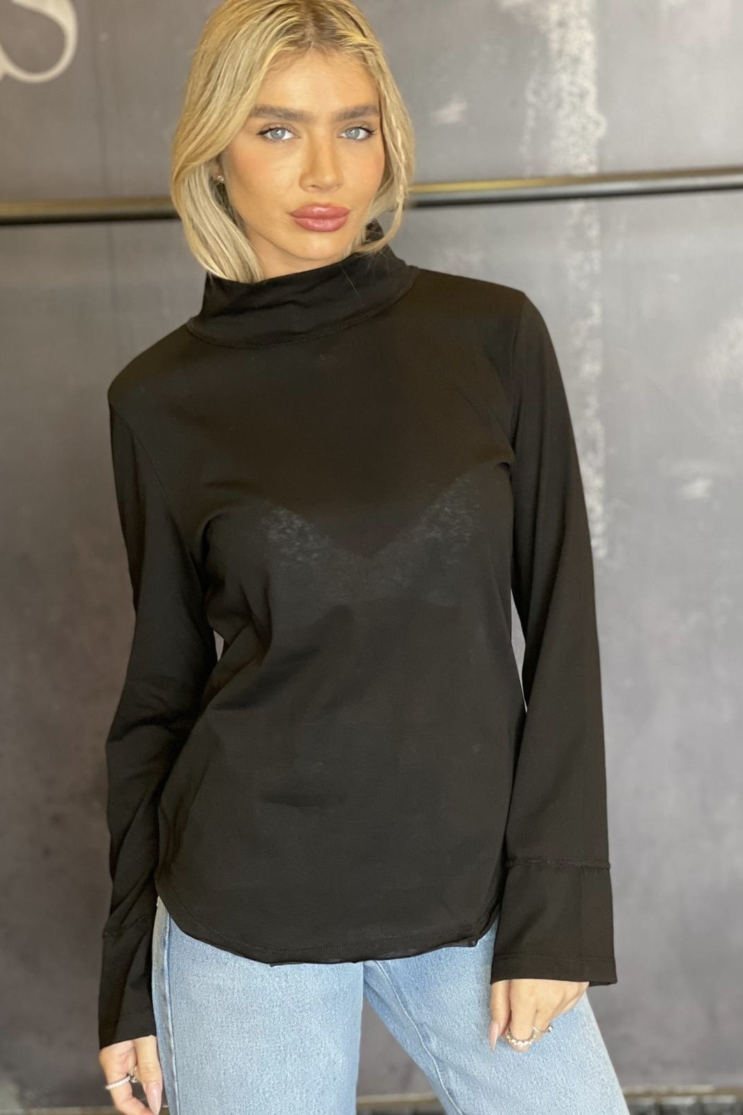 חולצת בייסיק עם צווארון גולף שרוול ארוך.