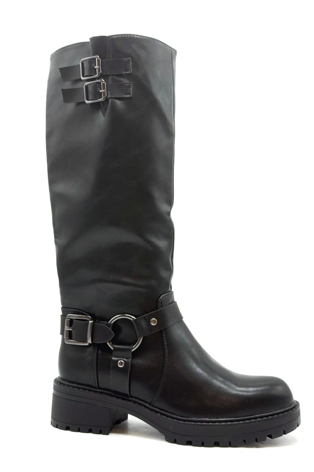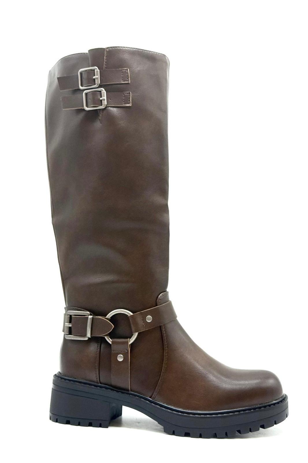 הכירי את המגפיים שיהפכו לסימן ההיכר שלך העונה. המגפיים החדשים שלנו ב-ROZIT מעוצבים בגובה הברך ועשויים דמוי עור איכותי ועמיד במיוחד בגימור חלק ומרשים. העיצוב כולל אלמנטים מעולם הרכיבה, כמו צמד אבזמים כסופים בחלק העליון ורצועת רכיבה דקורטיבית עם טבעת מתכת מרכזית באזור הקרסול. סוליית הטרקטור המסיבית לא רק מעניקה גובה מחמיא אלא גם מבטיחה יציבות ונוחות מקסימלית בכל צעד. פריט ורסטילי שמשתלב נפלא עם חצאיות קצרות, שמלות סרוגות או מעל מכנסי סקיני צמודים.