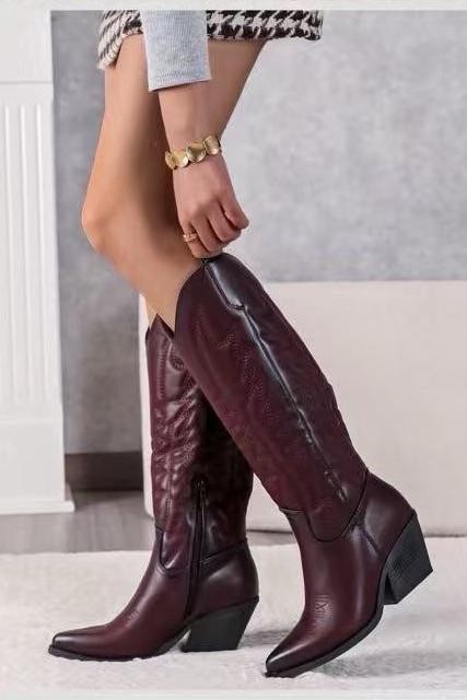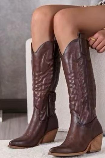עיצוב: רקמה מעוטרת לאורך המגף, גזרה גבוהה מתחת לברך.