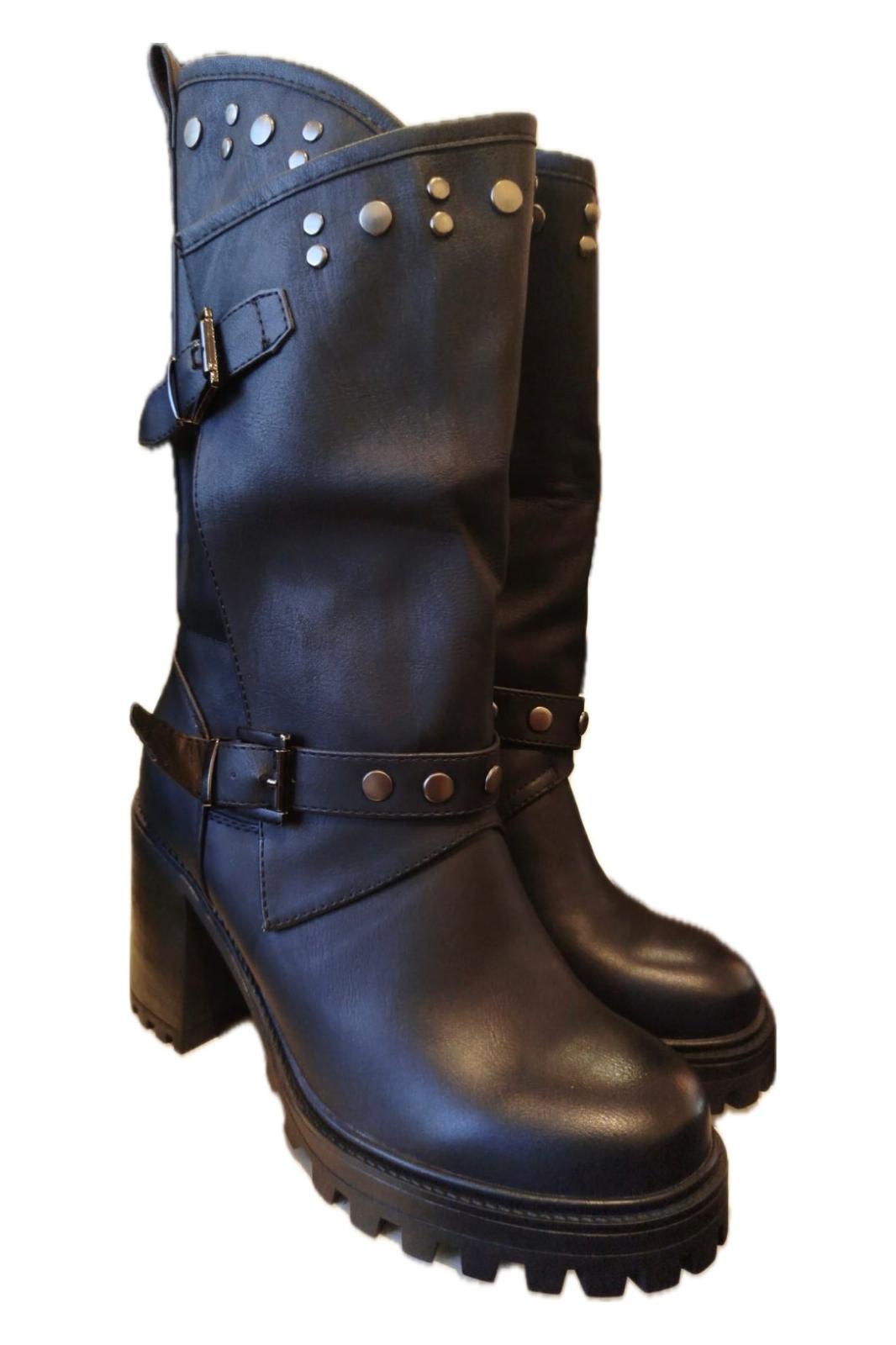 מגף גבוה עם עקב טרקטור גבוה בשילוב ניטים