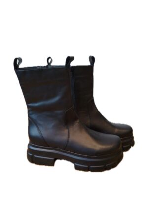 מגף עור עם עקב פלטפורמה וסגירת רוכסן.