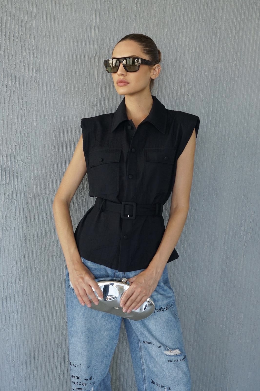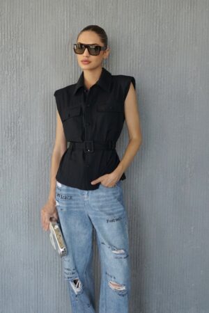 מכופתרת ספארי חגורה