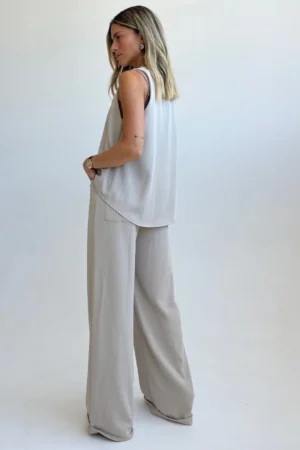 מכנס מבד ניס, בשילוב כיסים מאחורה, רך ונעים למגע. מתאים ליום יום או לערב קז’ואלי, בגזרה מחמיאה ובמראה נקי ומעודכן.