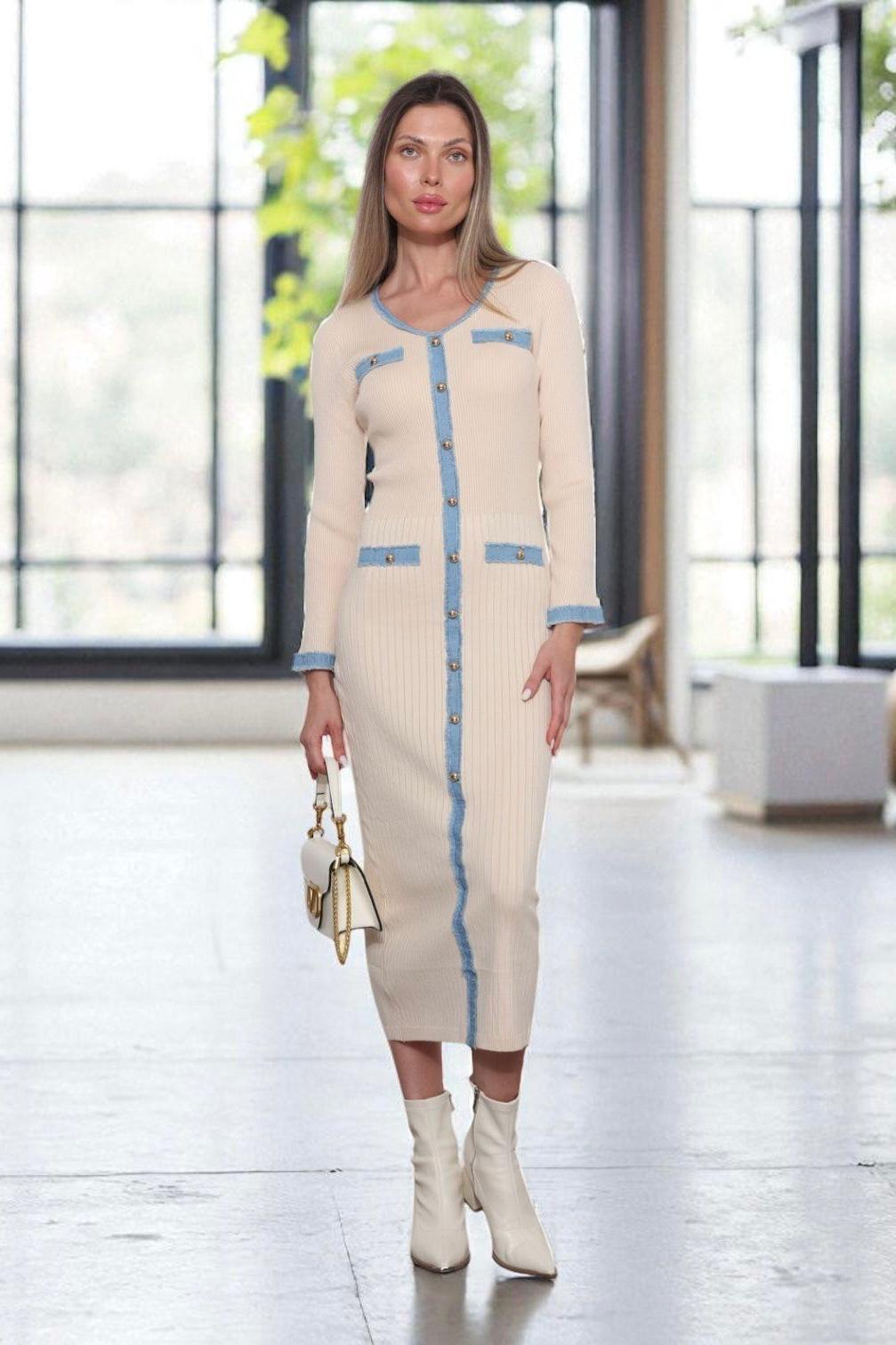 שמלת אביב שילוב ג'ינס כפתור זהב