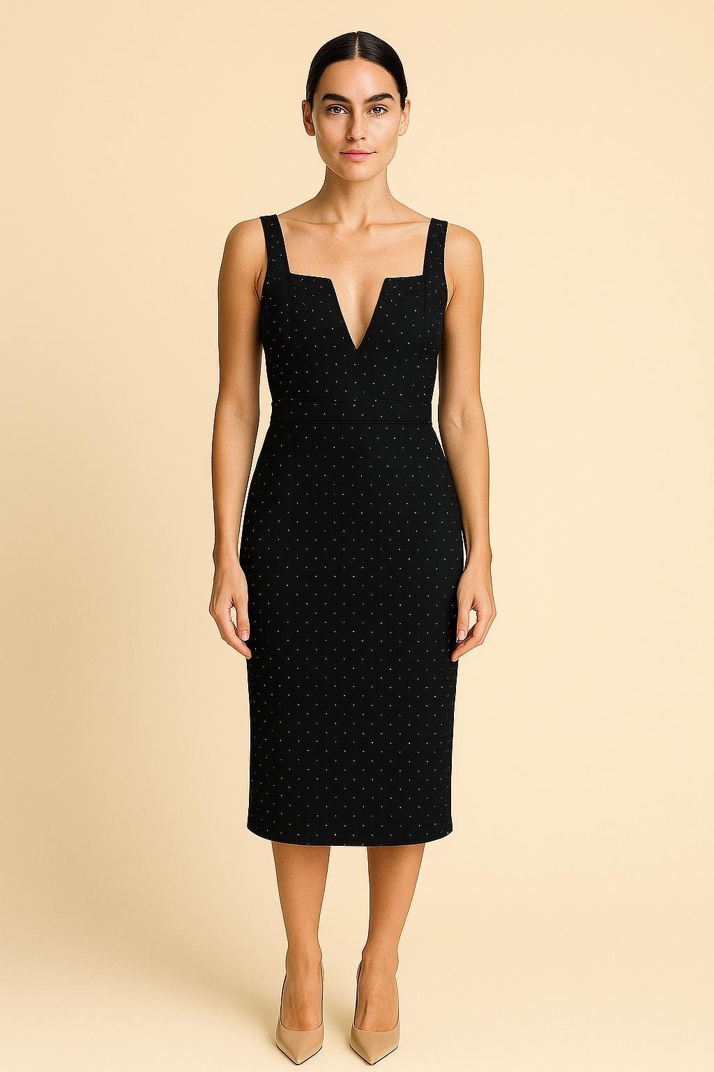 שמלת ערב משובצת אבנים עדינות ומפתח וי