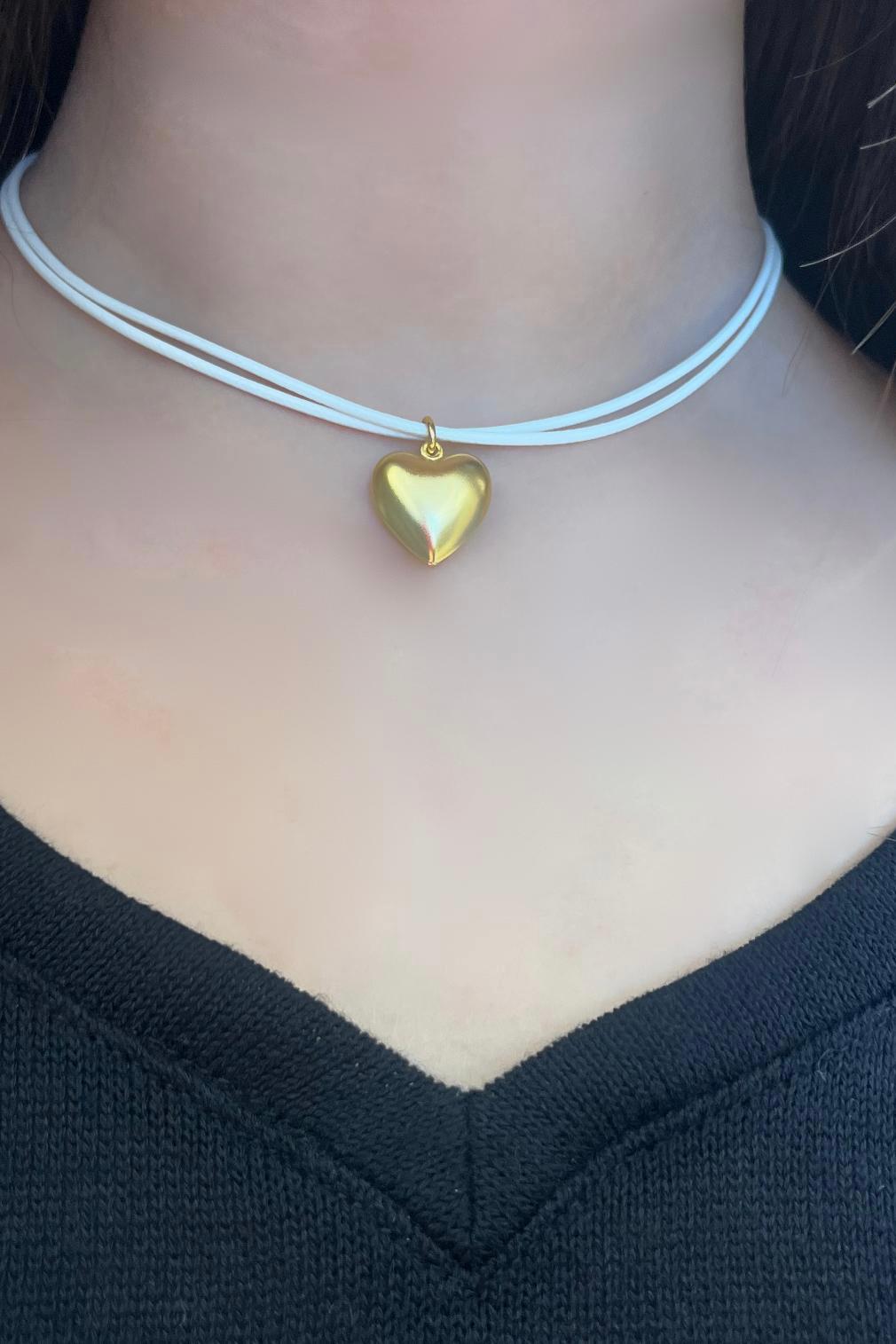 שרשרת לב ציפוי זהב על 2 שרוכי עור לבנים.