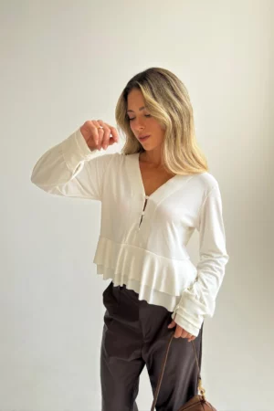 תתכונני להתאהב בגזרה שמחמיאה לכל אחת. חולצת אולה משלבת רכות נשית עם תחכום מודרני.