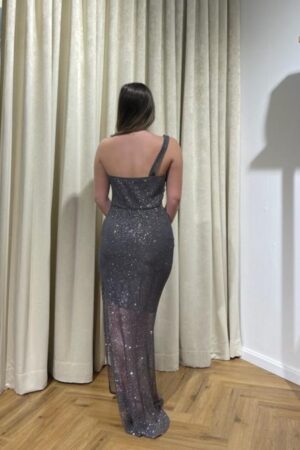 שמלה א-סימטרית עם פתח במותן.