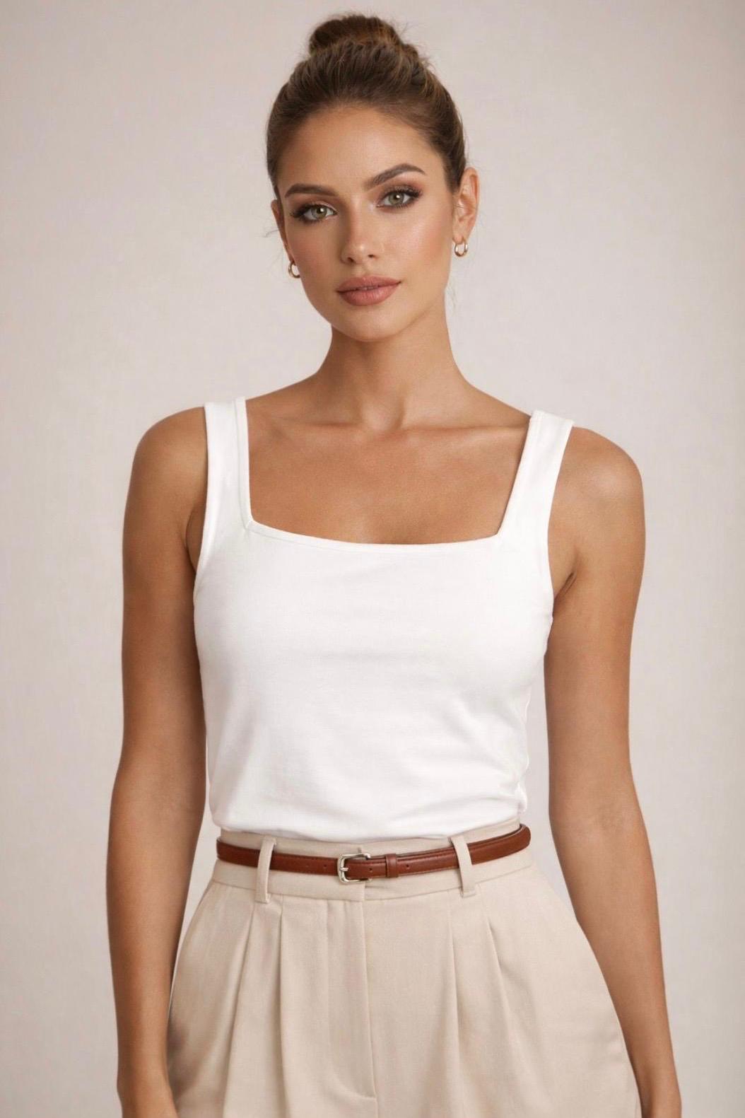 שדרגי את המלתחה עם פריט החובה שכל ארון צריך. גופיית בייסיק בגזרת Square-Neck מחמיאה, המעניקה מראה נקי ומלוטש ליום עבודה או לערב קליל.