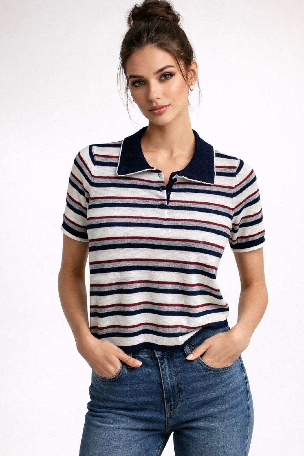 הפריט שיעניק לך לוק "Old Money" קליל ואלגנטי ללא מאמץ. סריג דק ונעים המשלב את גזרת הפולו העל-זמנית עם דוגמת פסים שיקית בגווני כחול-אדום, למראה מתוחכם ומוקפד.