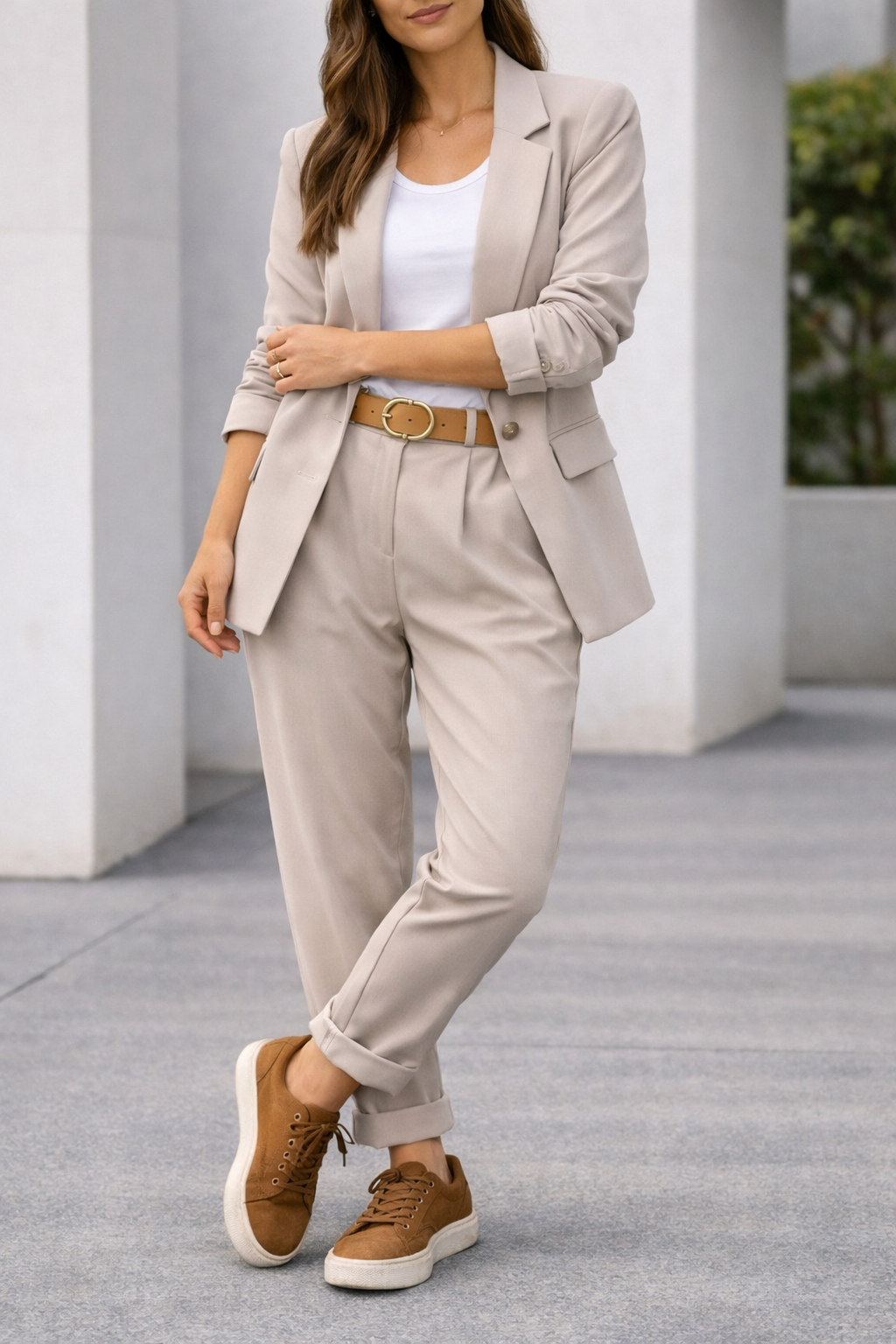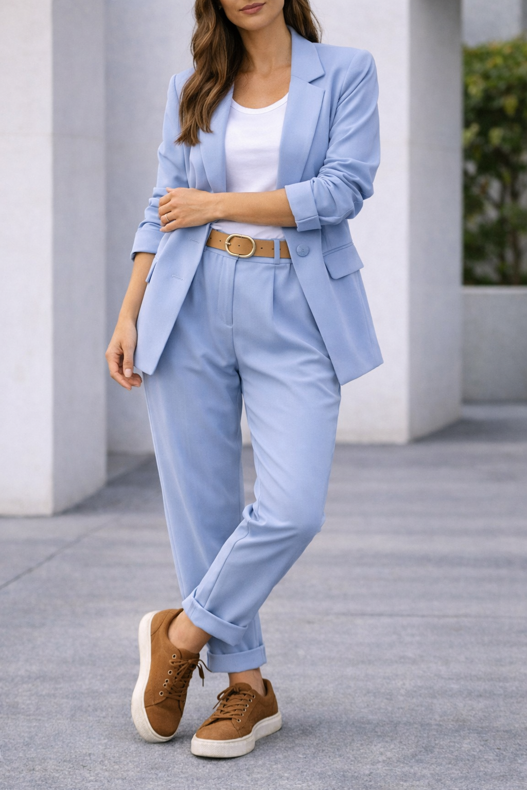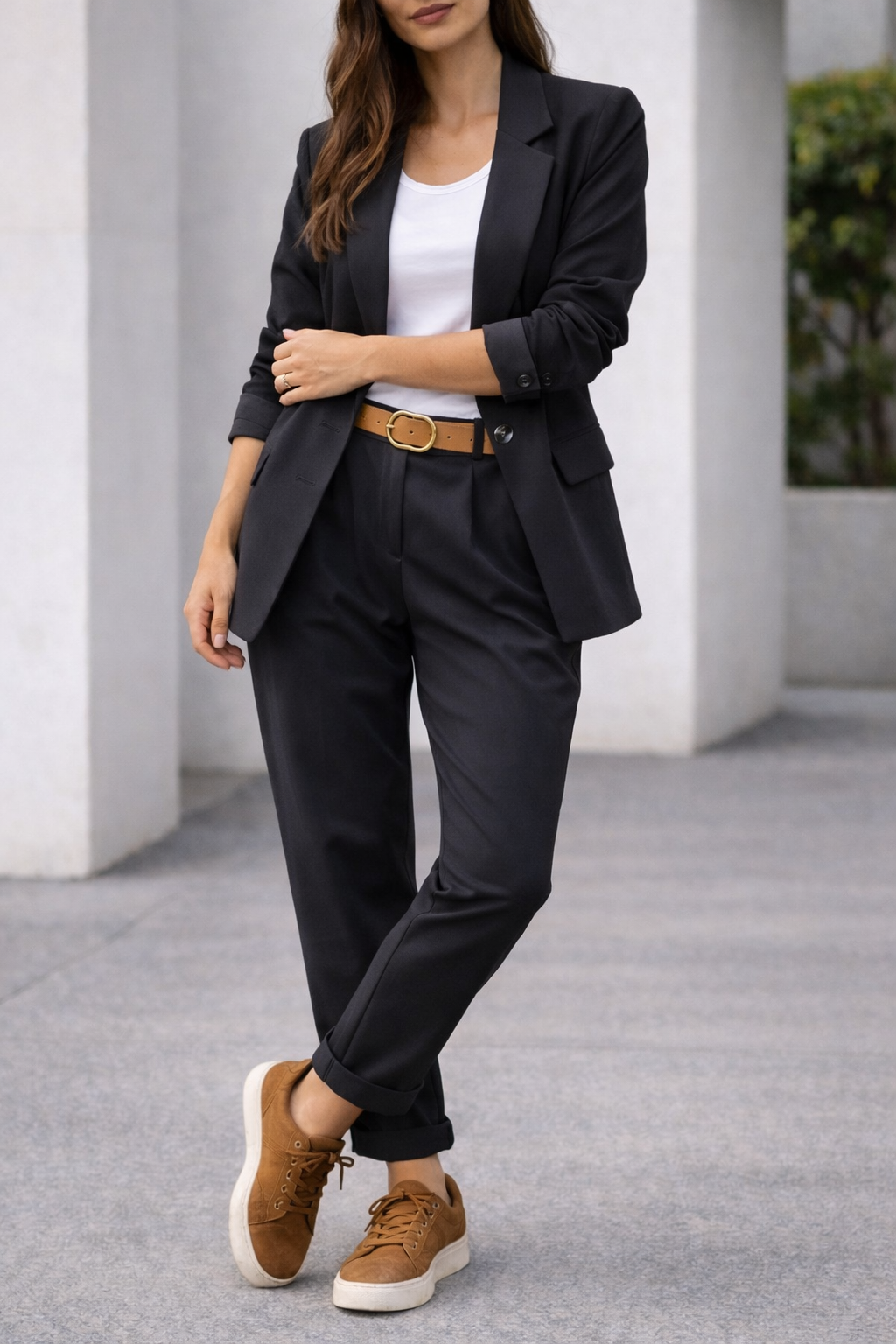 גזרת Loose-Fit מדויקת: חיתוך נינוח המאפשר תנועה חופשית ויוצר מראה "Power Suit" מודרני ומרשים.