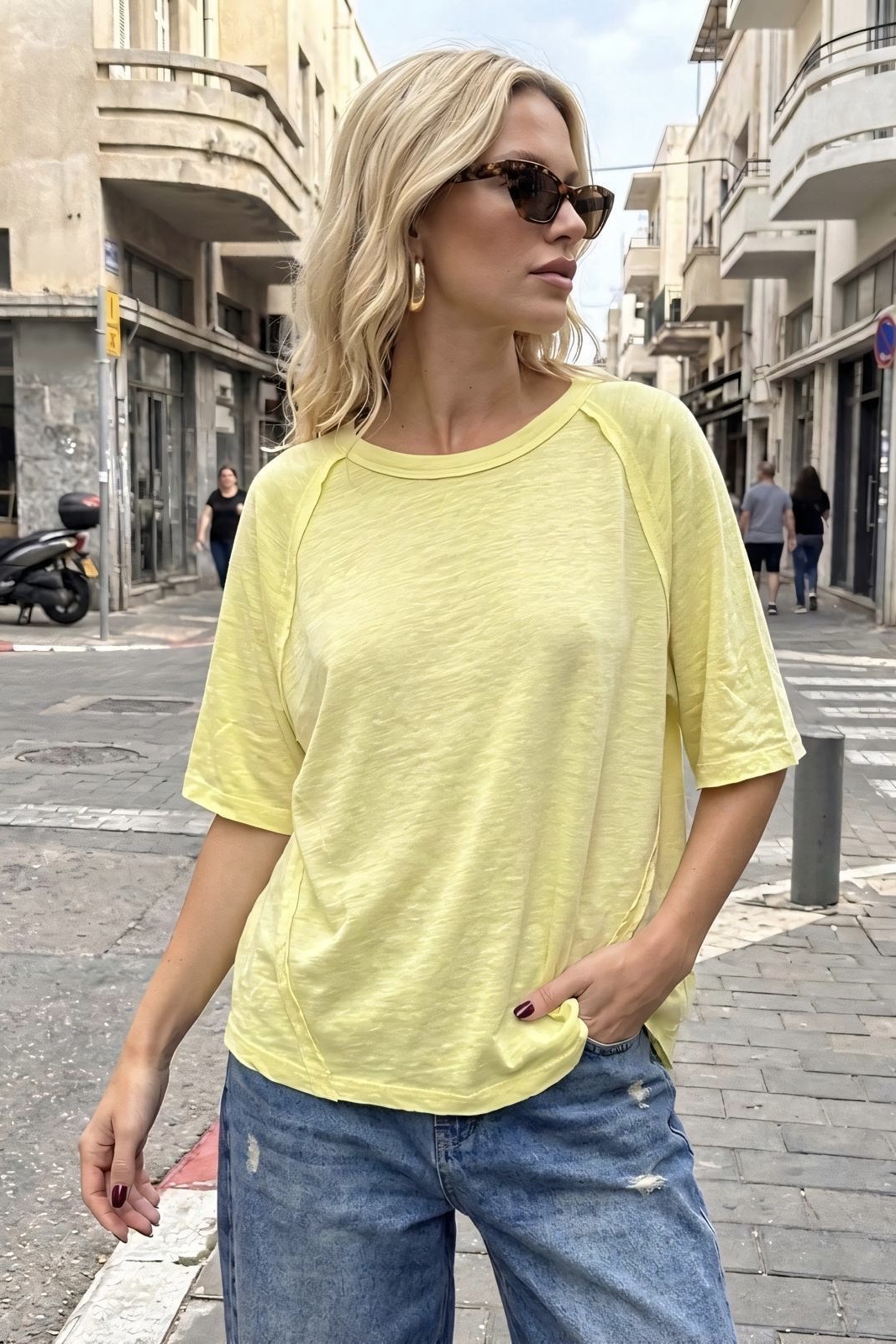 טקסטורת Slub ייחודית: בד בעל מראה טבעי ואוורירי שמרגיש נעים על הגוף.